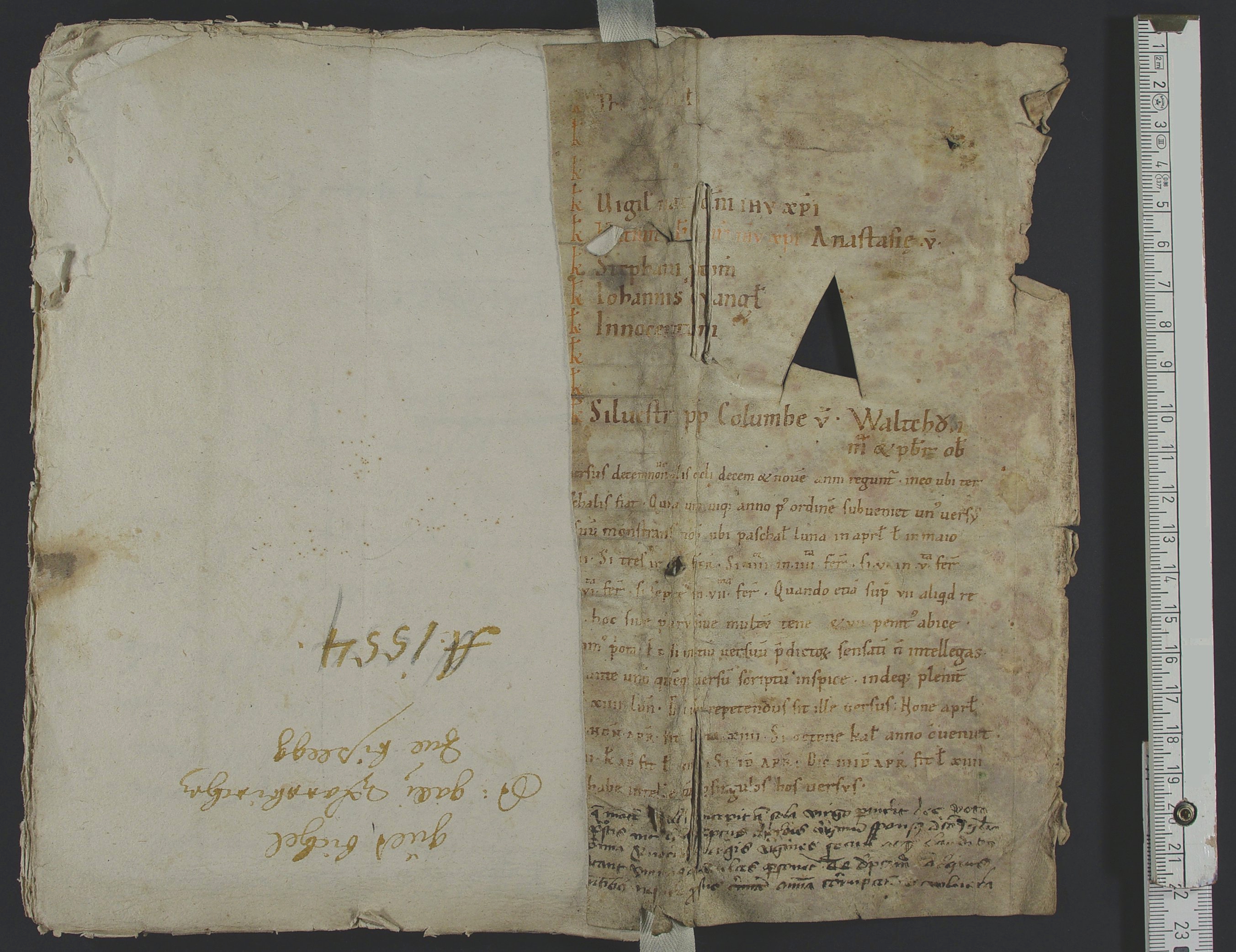 Fragment besteht aus Pergament und ist 13 cm schmal und 22 cm